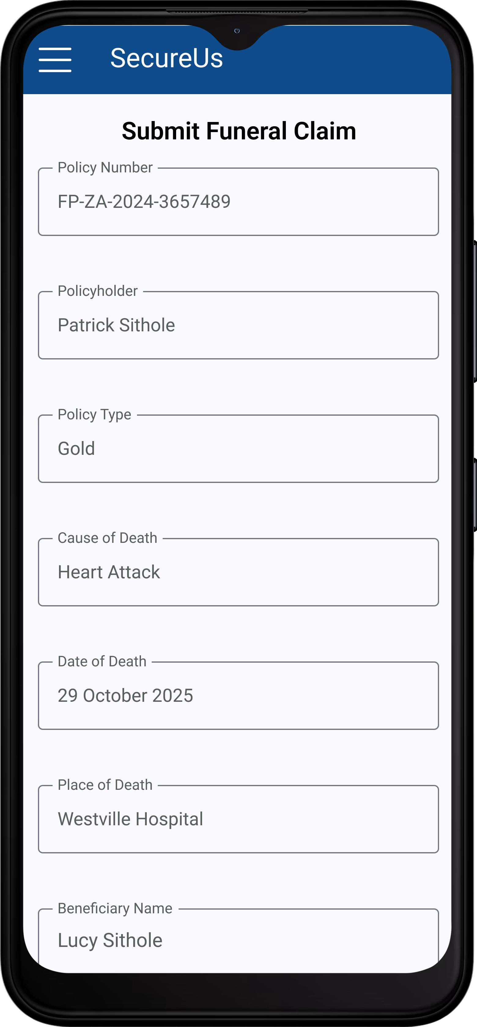 SecureUs is a digital funeral benefit designed to solve one of the biggest problems in insurance today: Slow payouts, disputed beneficiaries, and administrative bottlenecks at the moment families need support most.